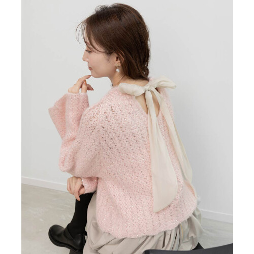【SALE】【選べる丈感】スパンコール混オーバーサイズニット