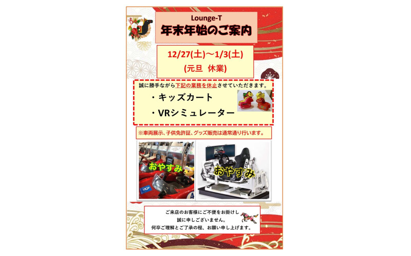 【キッズカート・子ども免許証・トミカ販売の休止につきまして】