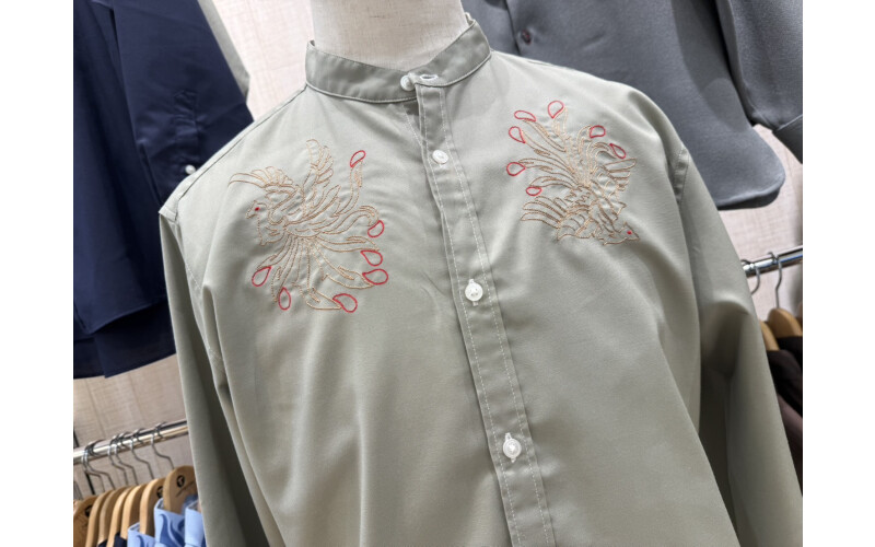 鳳凰ステッチバンドカラー長袖シャツ