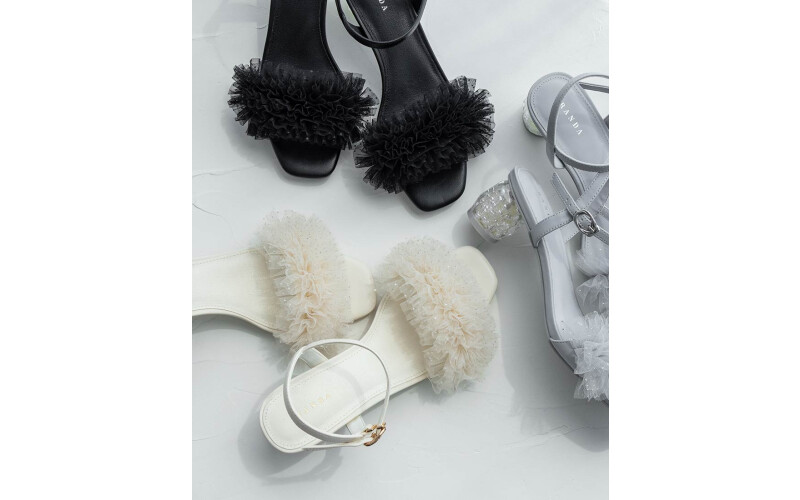 ラメがきらめくチュールを繊細に重ね、アッパー全体をクチュールライクに演出いたしました。