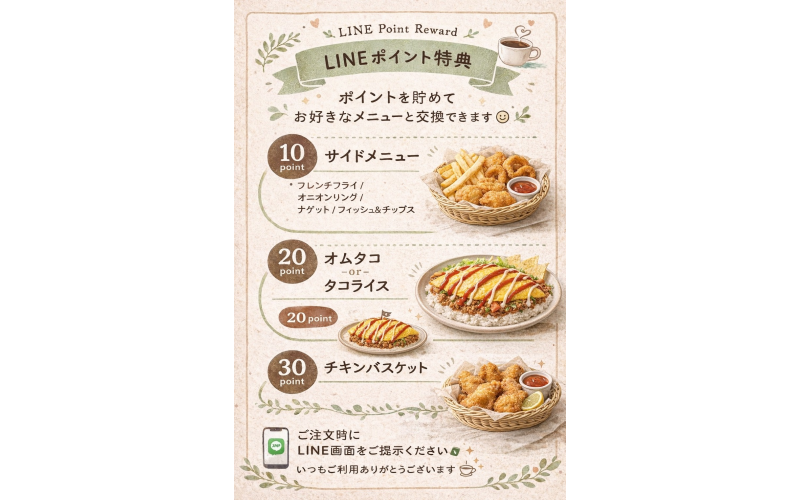 きじむなぁ公式ラインアカウントで来店ポイントを貯めて