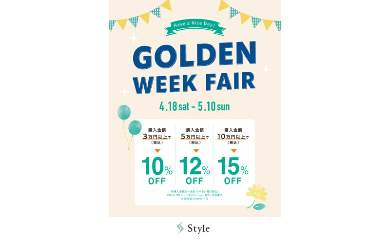Styleショップにて、ゴールデンウィークフェアを開催します!